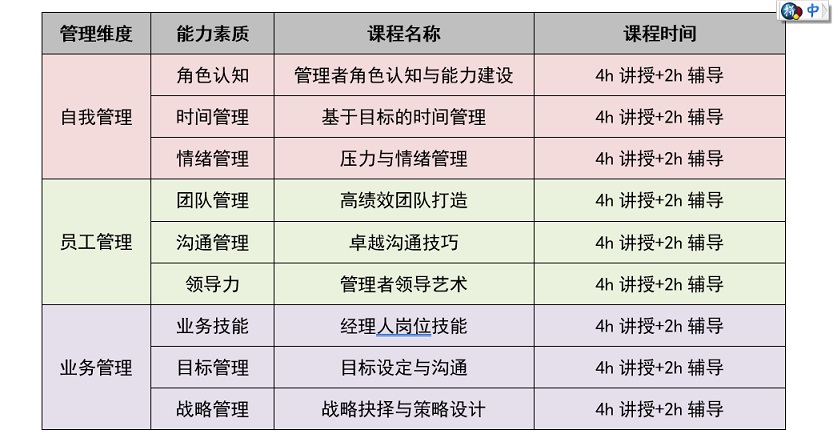 表1-4中高層管理者培訓(xùn)課程安排表